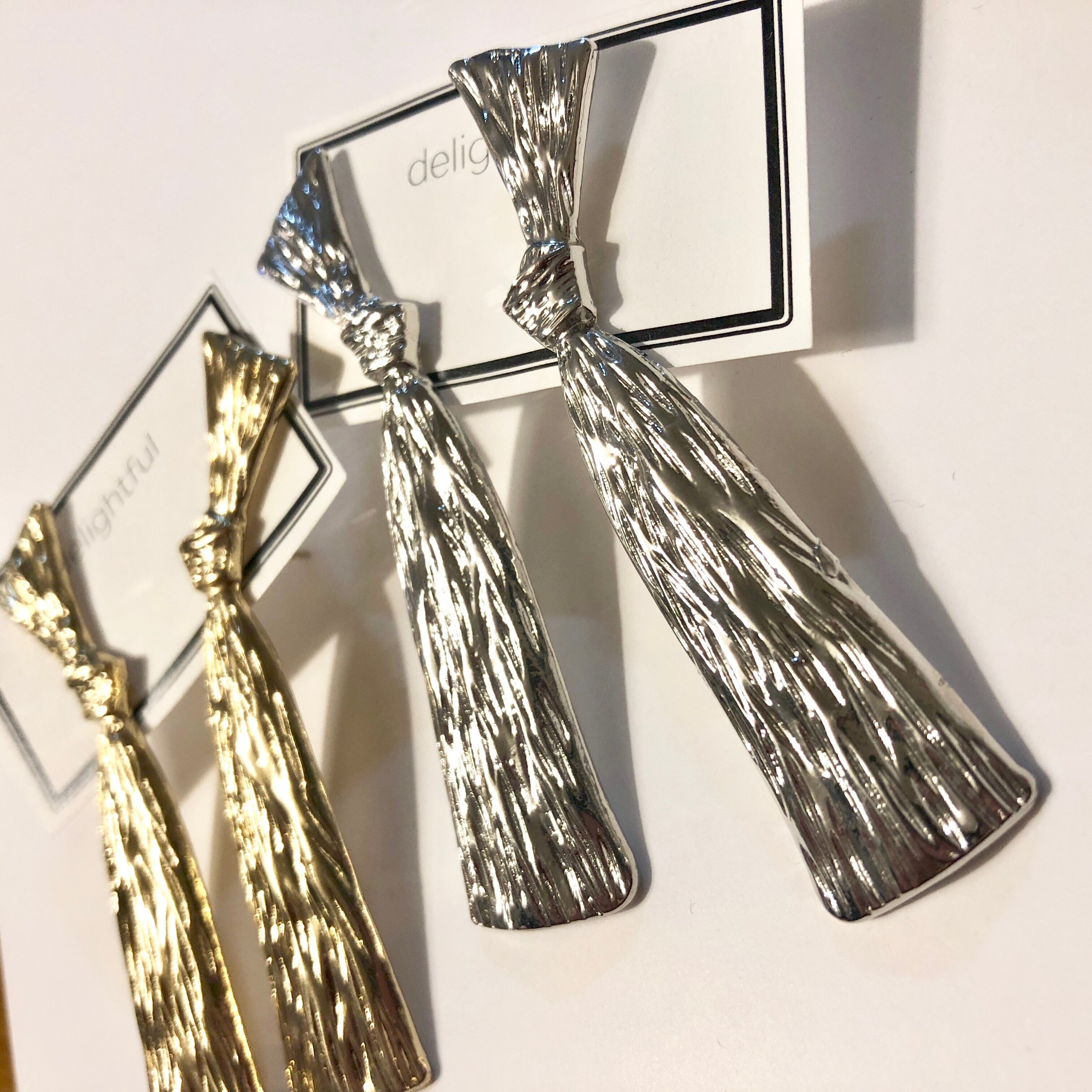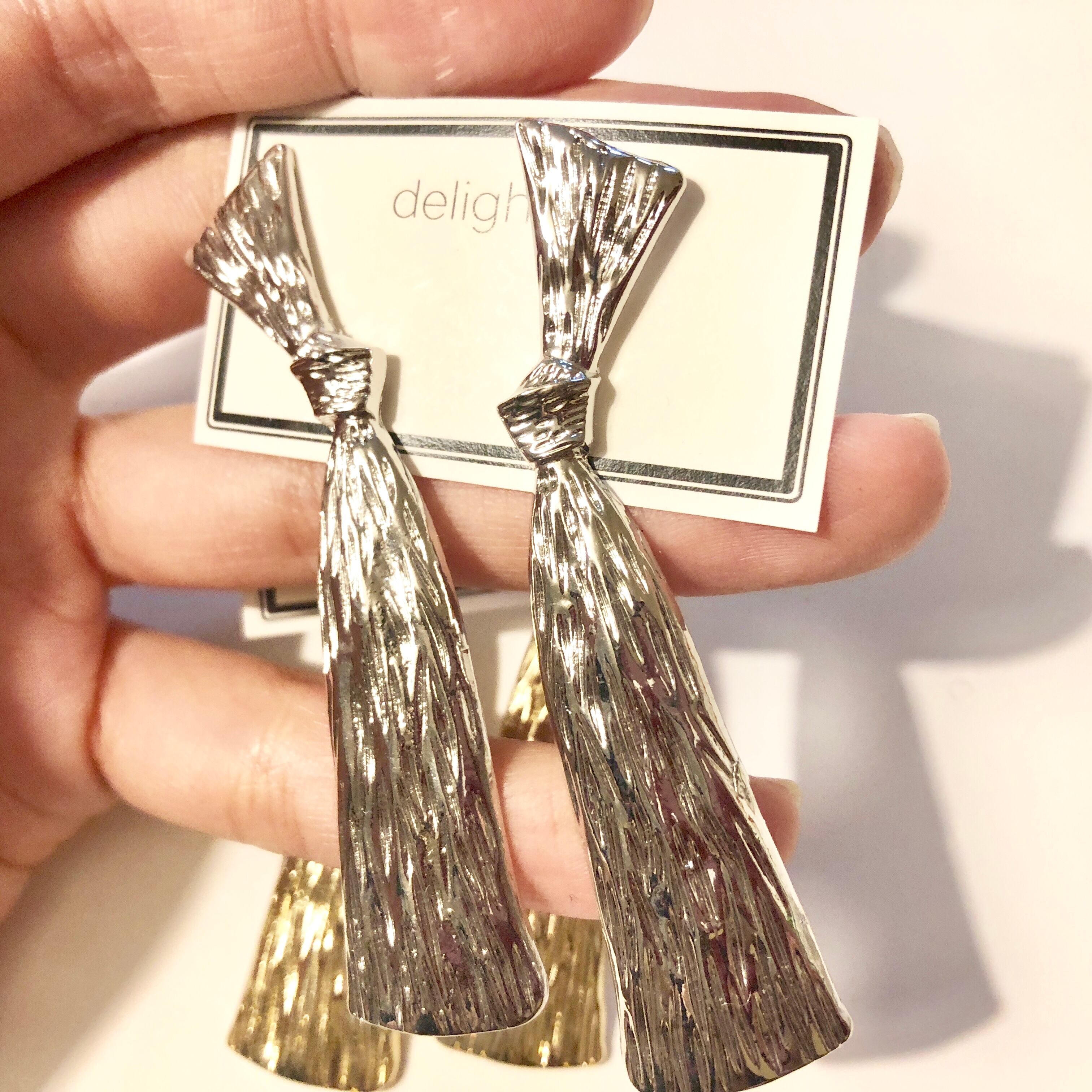 長さ約7cm、リボンを結んだようなデザインのピアス(イヤリング)