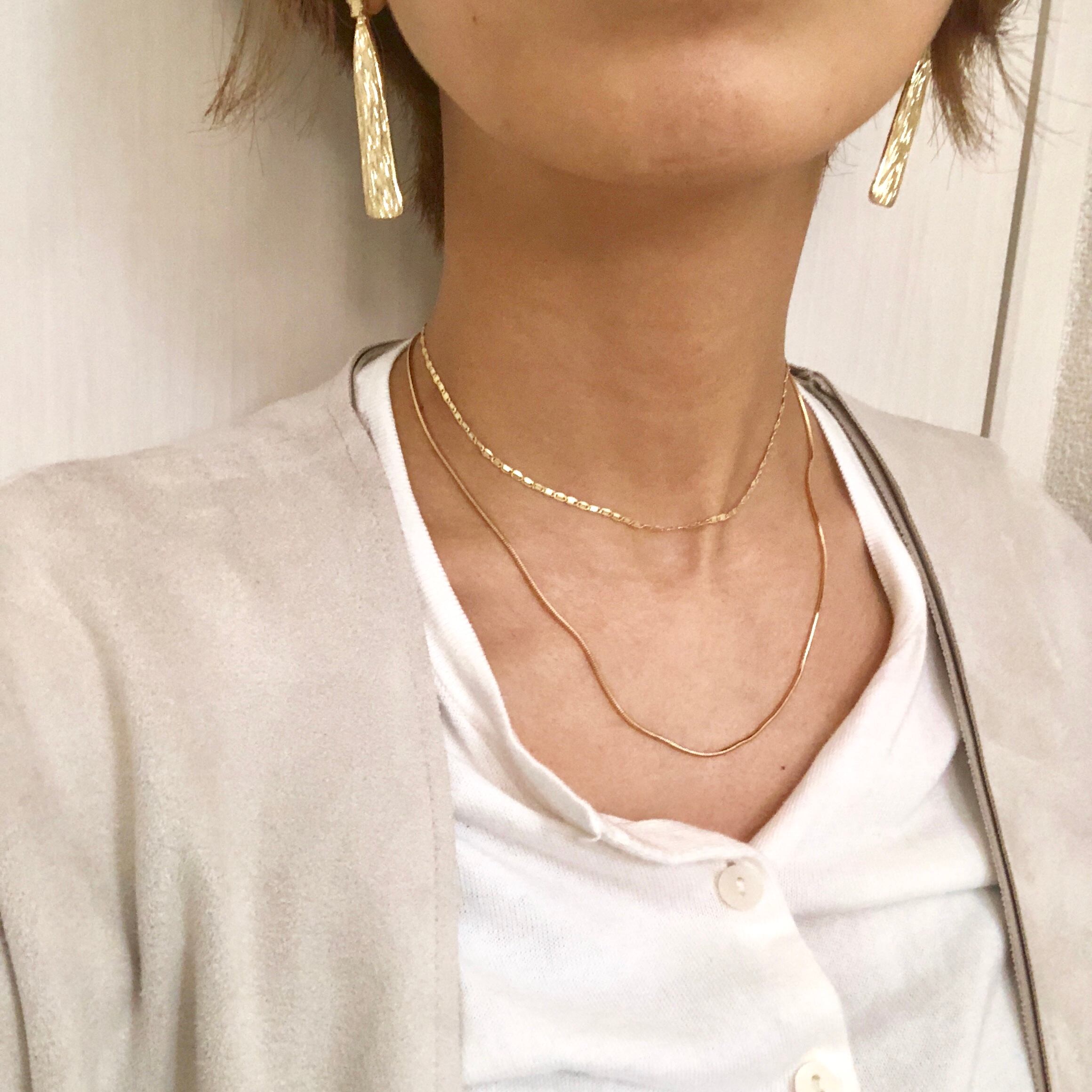 金属アレルギーをお持ちの方へ、こちらの商品はゴールドリングの部分が横になると首などに触れてしまう為、ご心配な方はご遠慮くださいませ。